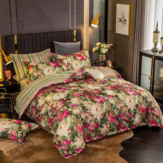 100% Cotton 400TC Reversible Bedding Set – Soft Duvet & Sheet Set Green & Gray