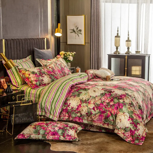 100% Cotton 400TC Reversible Bedding Set – Soft Duvet & Sheet Set Purple & Pink